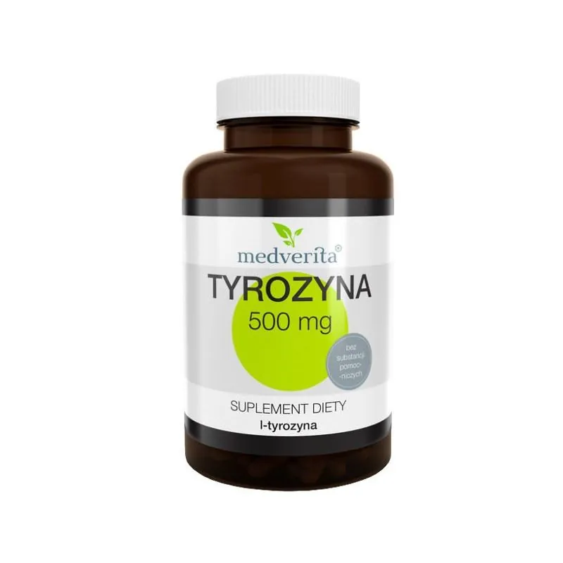 Tyrozyna marki Medverita to suplement diety, którego skład nie zawiera sztucznych wypełniaczy. To czysta tyrozyna w formie niewielkich kapsułek powlekanych, co zapewnia maksymalną wygodę stosowania. Tyrozyna jest aminokwasem, który naturalnie występuje w organizmie, lecz w przypadku osób obciążonych nadmiernym wysiłkiem fizycznym, może wystąpić niedobór tego składnika. W takim przypadku sama dieta może okazać się niewystarczająca.