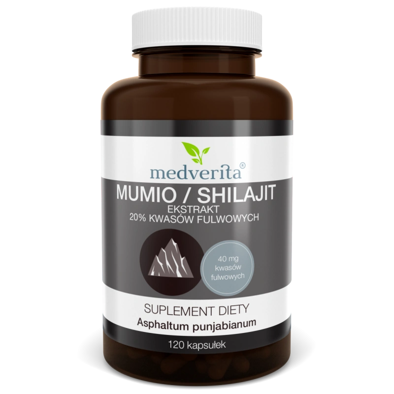 Mumio (Shilajit) powstaje w procesie obumierania materii organicznej porastającej skały górskie, głównie Himalaje. Preparat zawiera ekstrakt z Shilajit himalajskiego standaryzowany na zawartość 20% kwasów fulwowych.