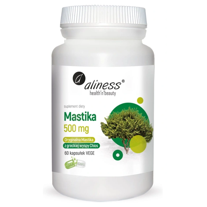 Sproszkowana żywica zawarta w Aliness Mastika 500mg to oryginalna mastika chioska, pozyskiwana z drzew pistacji kleistej (Pistacia lentiscus) rosnących wyłącznie na greckiej wyspie Chios – czyli w naturalnym obszarze występowania rośliny, z którego pierwotnie pozyskiwano mastikę od czasów starożytnych. Naturalne pochodzenie surowca oraz brak nadmiernej obróbki technologicznej to gwarancja pełnego spektrum substancji aktywnych.